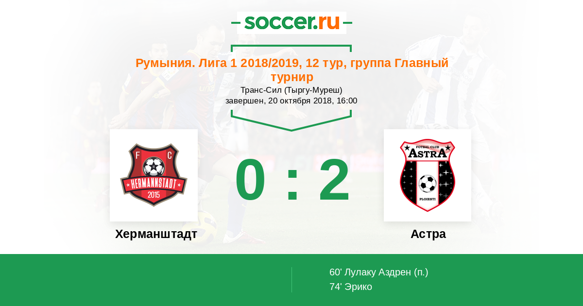 74' (0:2) Эрико (21) (Алибек Денис (7))