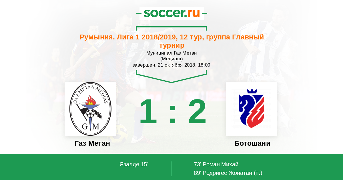Протокол матча Газ Метан против Ботошани