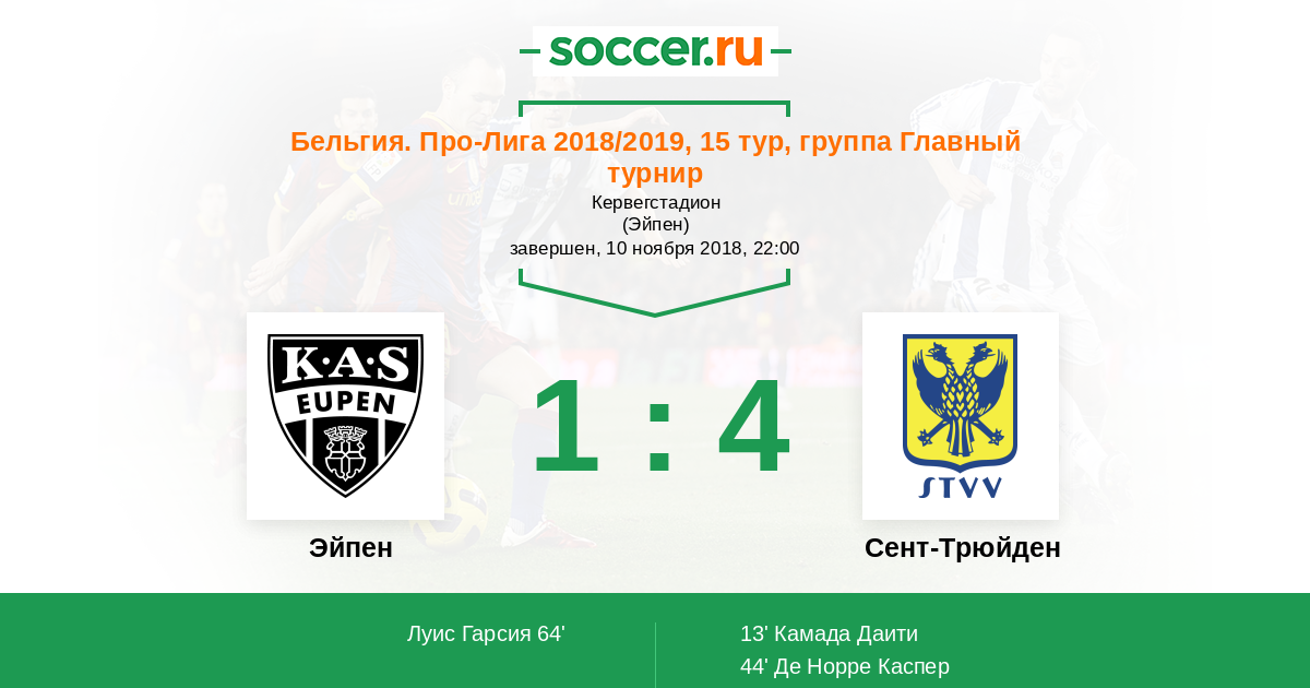 Протокол матча Эйпен против Сент-Трюйден