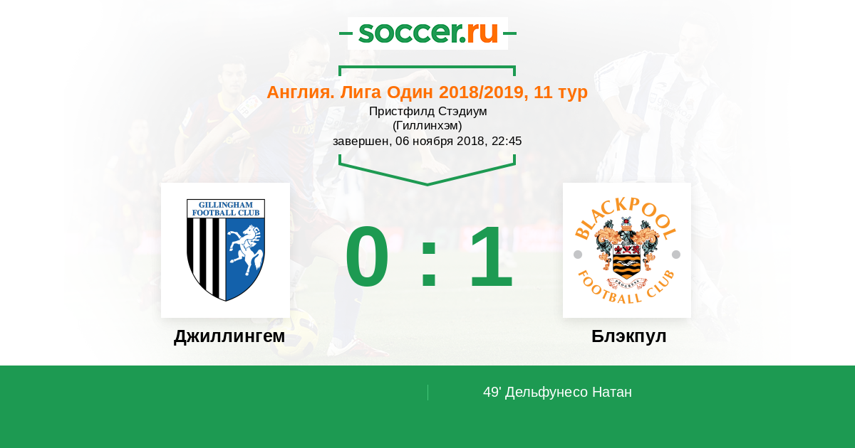 Протокол матча Джиллингем против Блэкпул