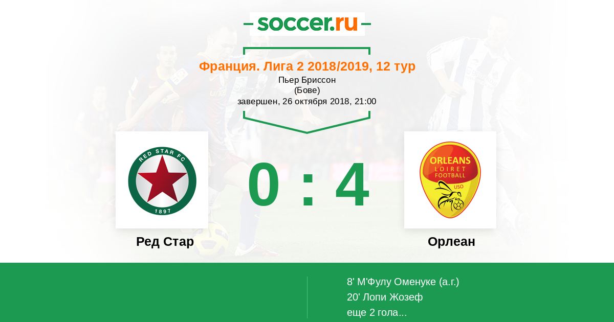 Протокол матча Ред Стар против Орлеан