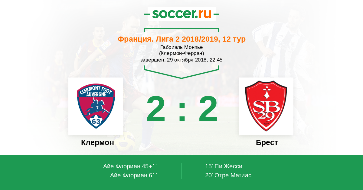 Протокол матча Клермон против Брест