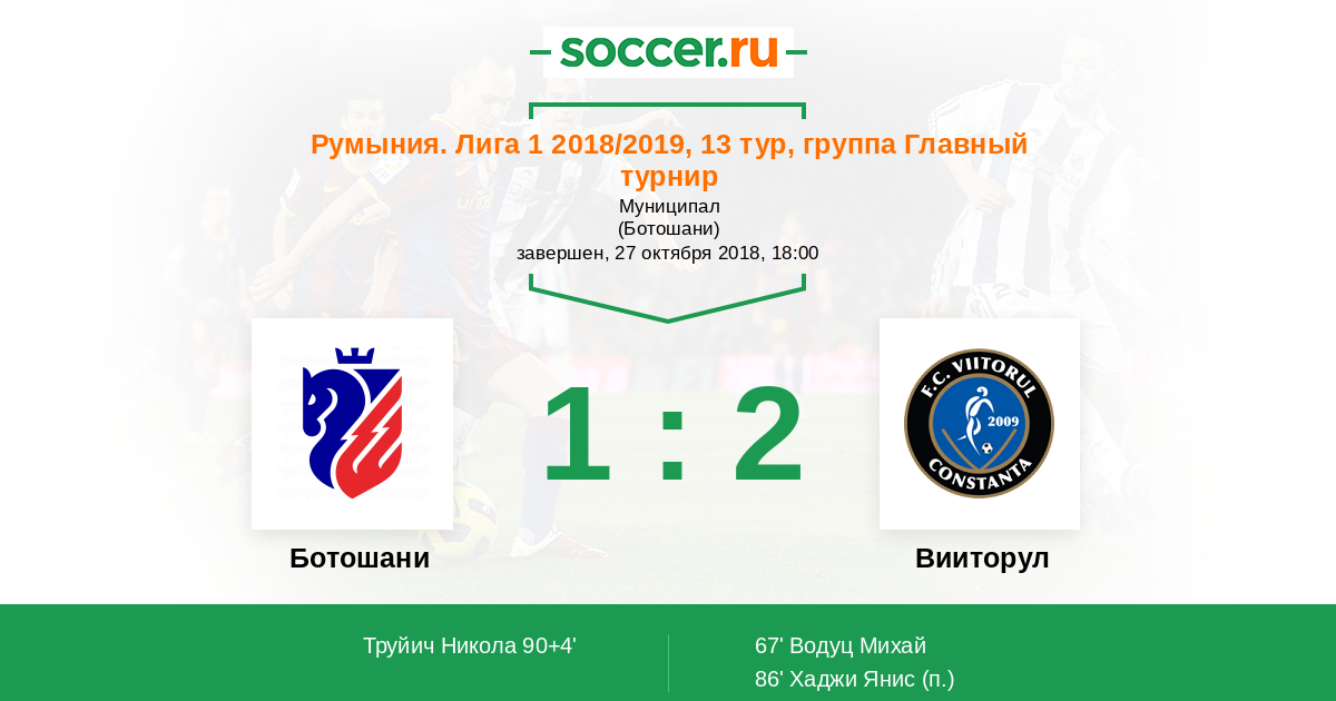 67' (0:1) Водуц Михай (9) (Дрэгуш Денис (13))