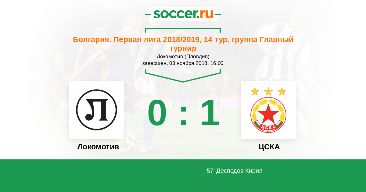 Протокол матча Локомотив против ЦСКА