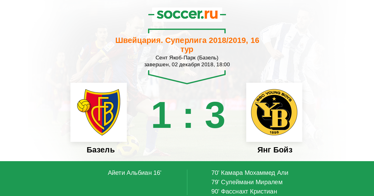 Протокол матча Базель против Янг Бойз