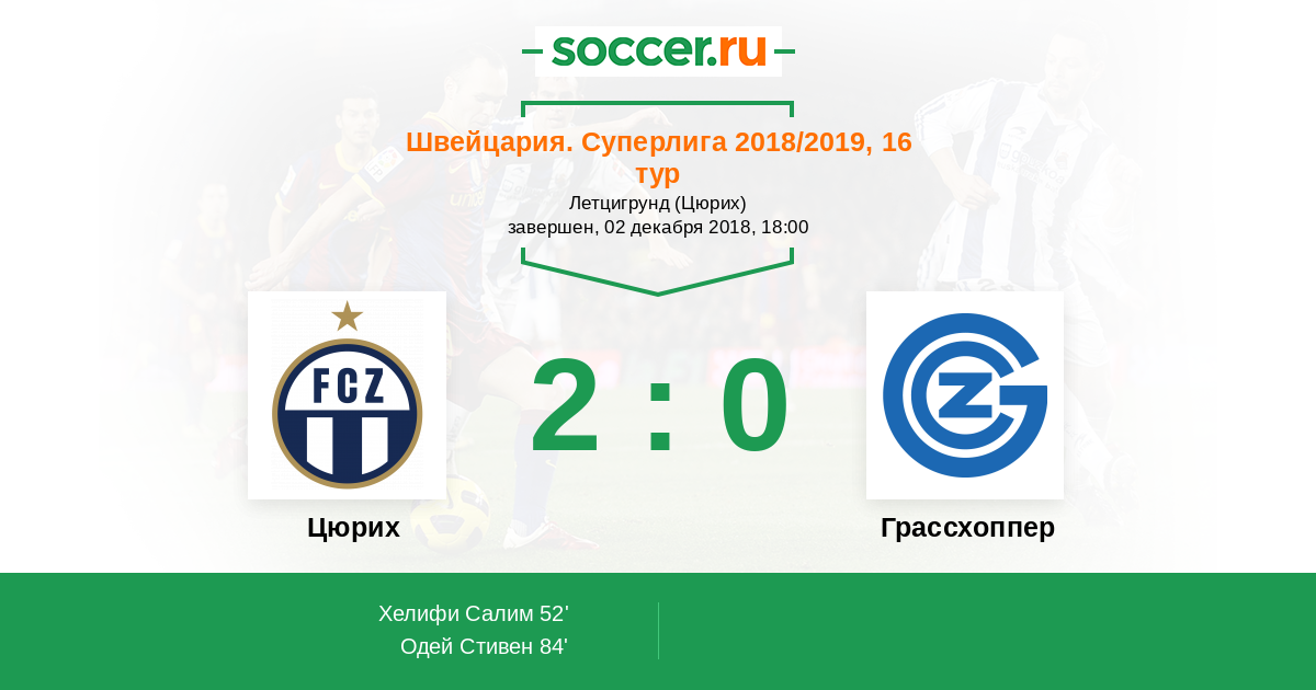 Протокол матча Цюрих против Грассхоппер