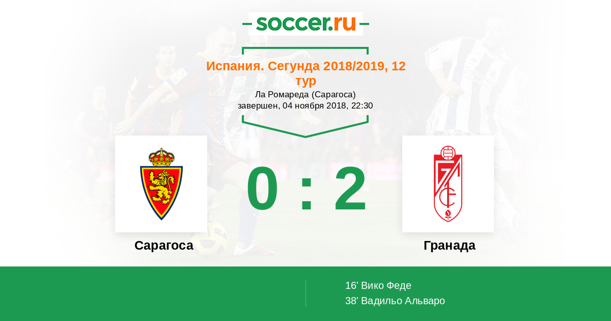 Протокол матча Сарагоса против Гранада