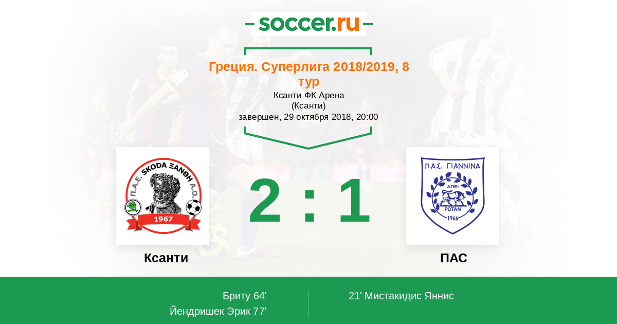 Протокол матча Ксанти против ПАС