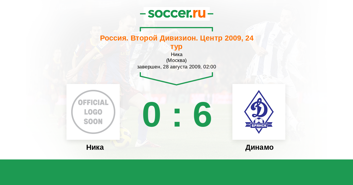 Россия. Вторая лига. Группа 3 28.05.2009 Динамо Брянск Логотип футбольный клуб Динамо Брянск 4:0 Логотип футбольный клуб Ника (Москва) Ника