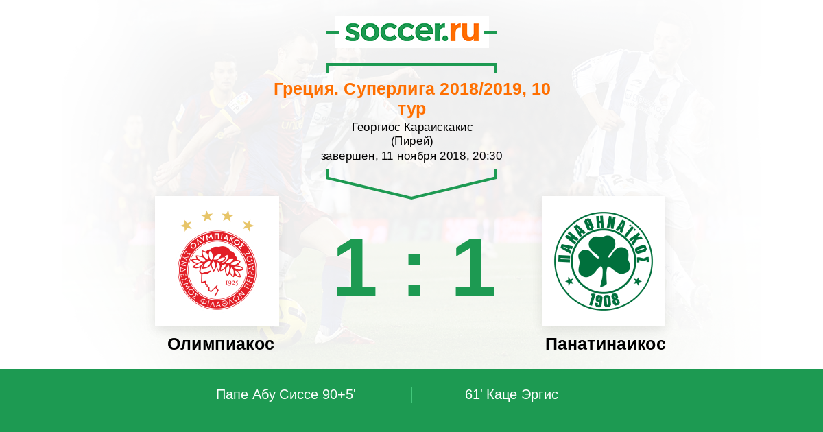 Протокол матча Олимпиакос против Панатинаикос