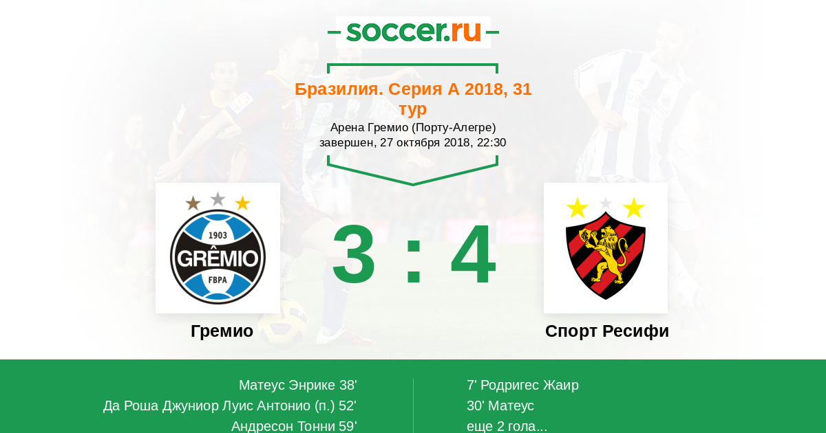 Протокол матча Гремио против Спорт Ресифи