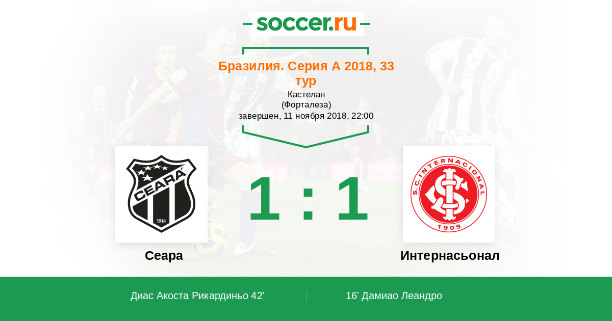 42' (1:1) Диас Акоста Рикардиньо (8) (Кабрал Артур (40))