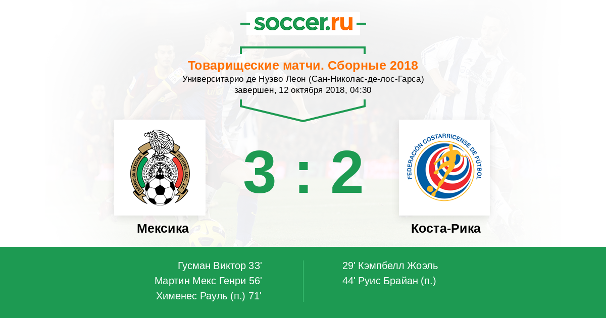 Протокол матча Мексика против Коста-Рика