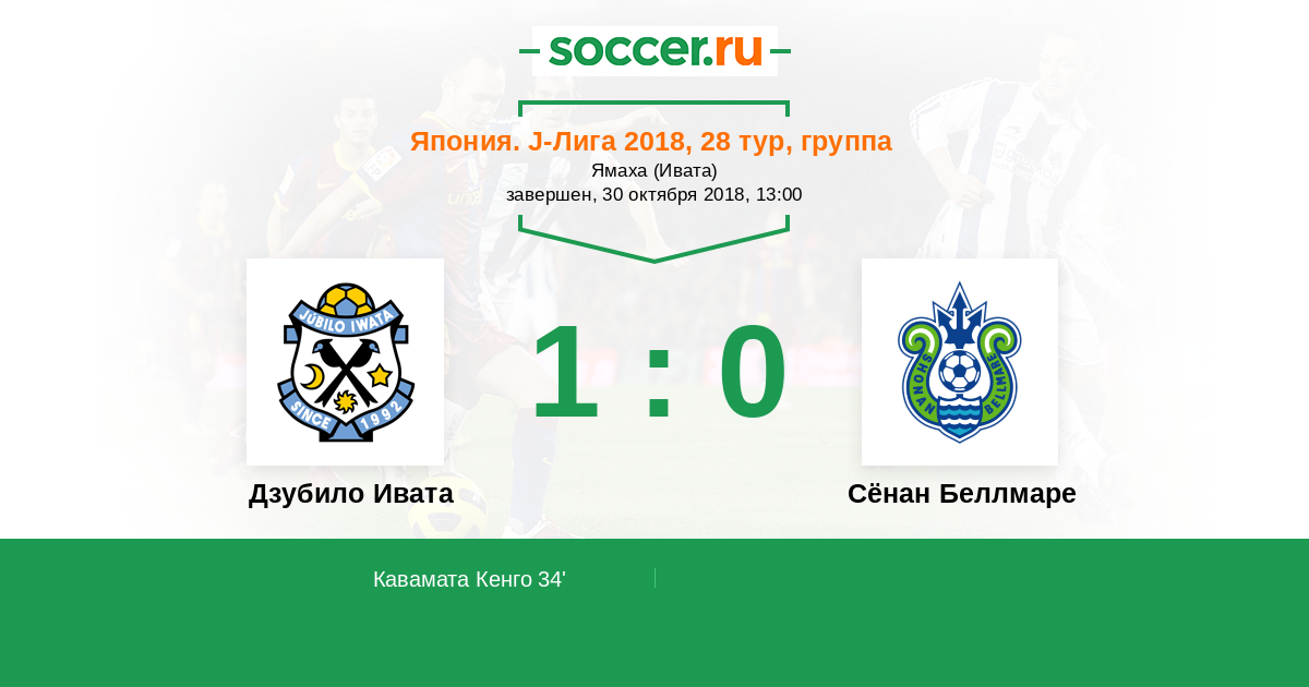Протокол матча Дзубило Ивата против Сёнан Беллмаре