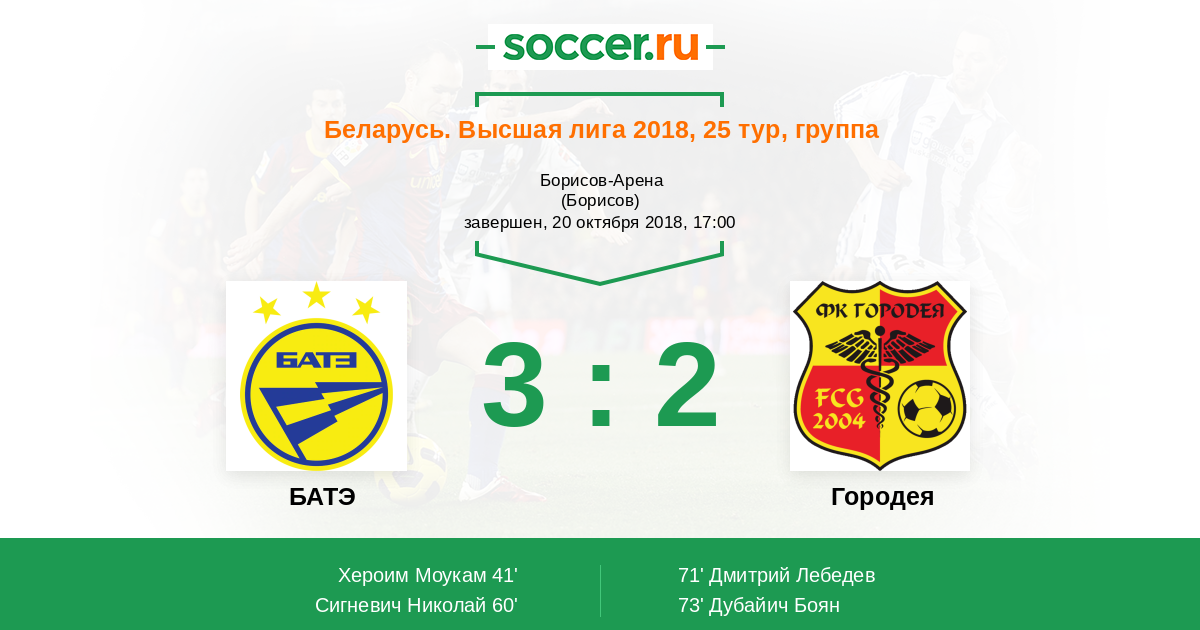 Протокол матча БАТЭ против Городея