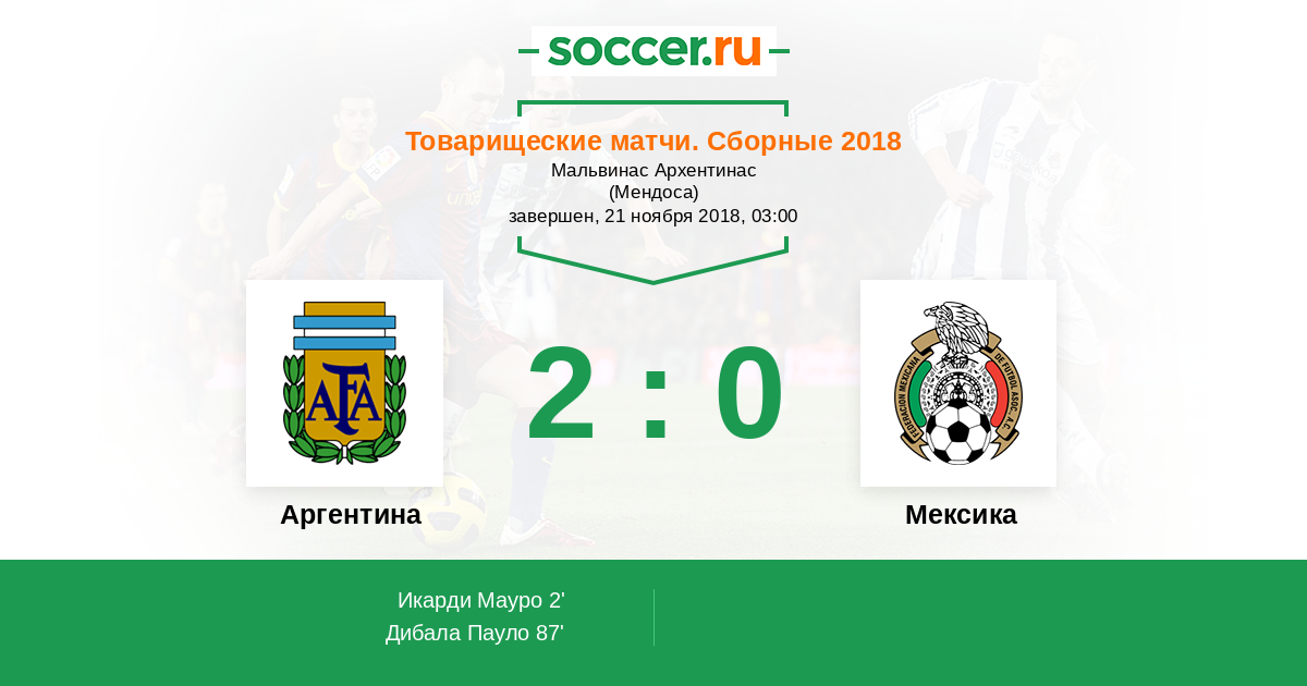 Протокол матча Аргентина против Мексика