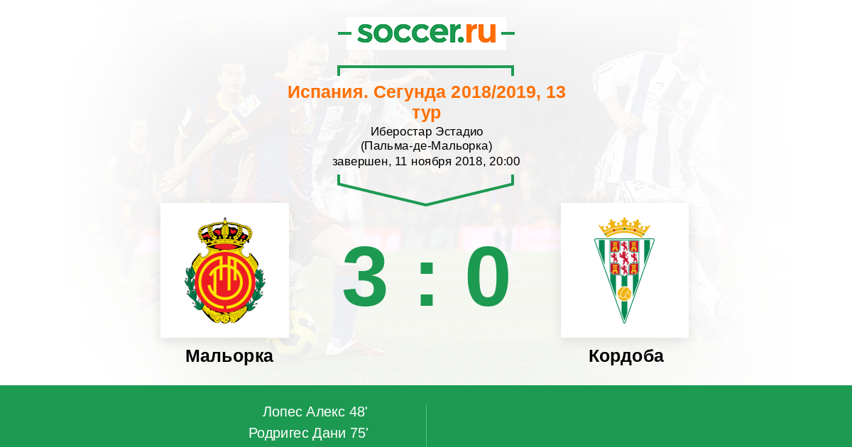 Протокол матча Мальорка против Кордоба