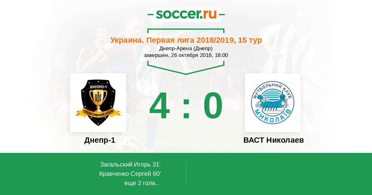 Протокол матча Днепр-1 против ВАСТ Николаев