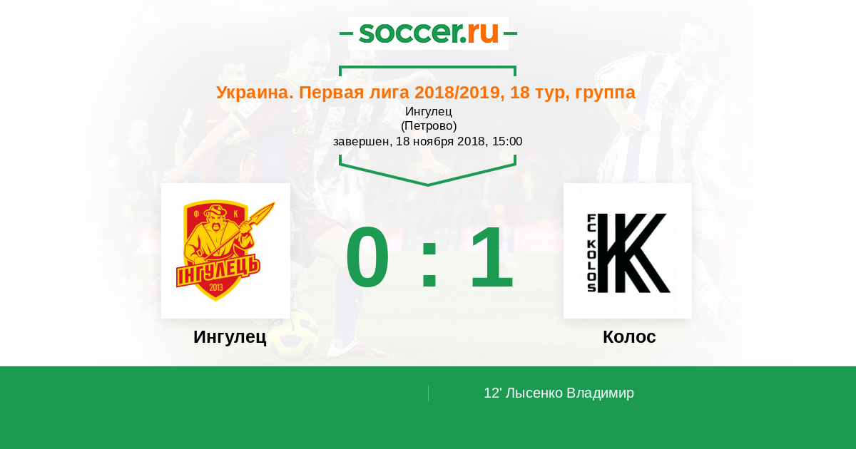 Протокол матча Ингулец против Колос