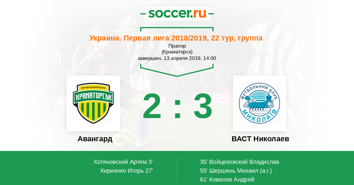 Протокол матча Авангард против ВАСТ Николаев