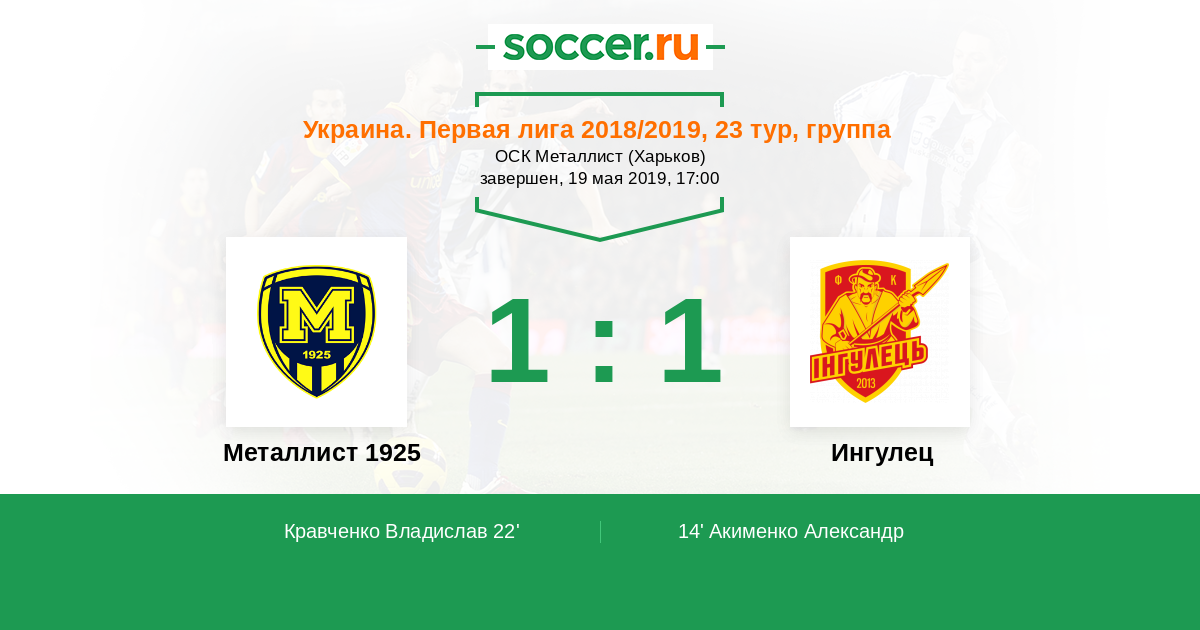 Протокол матча Металлист 1925 против Ингулец