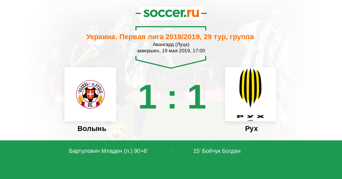 Протокол матча Волынь против Рух