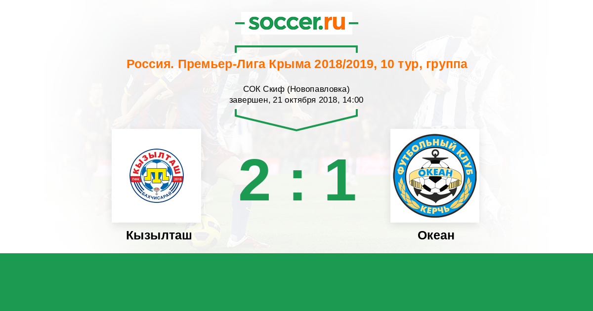 Россия. Премьер-Лига Крыма 02.06.2021 Океан Логотип футбольный клуб Океан (Керчь) 1:0 Логотип футбольный клуб Кызылташ (Бахчисарай) Кызылташ