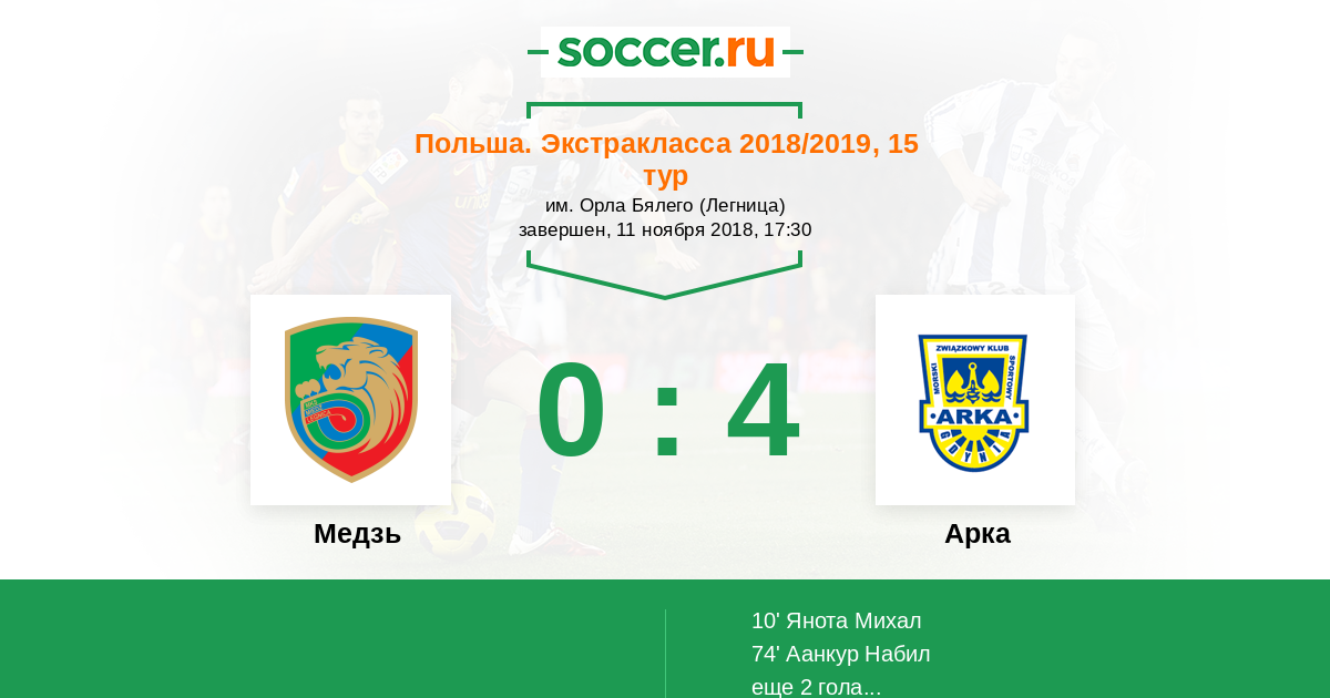 10' (0:1) Янота Михал (22) (Янковски Мацей (7))