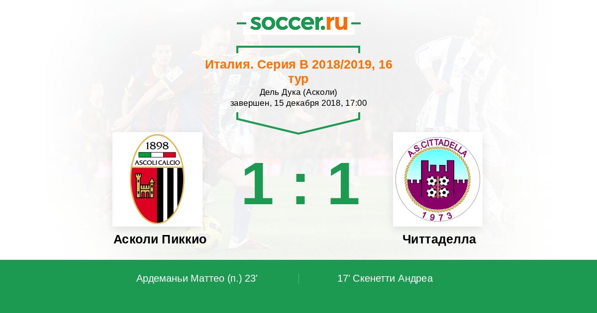 Протокол матча Асколи Пиккио против Читтаделла
