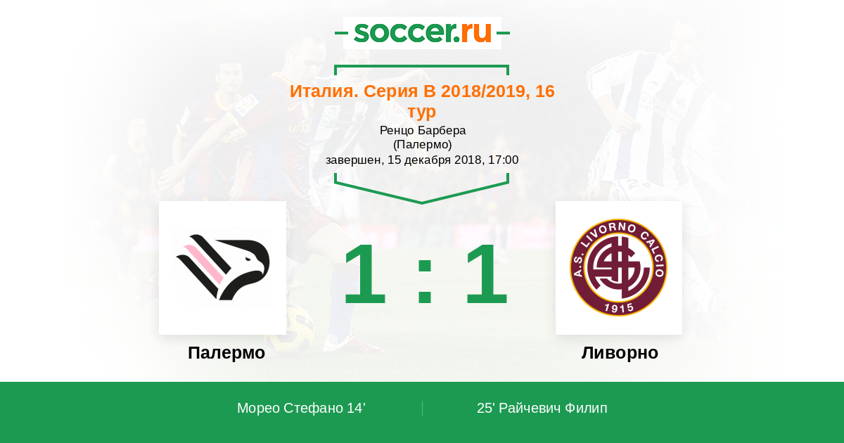 14' (1:0) Морео Стефано (9) (Фаллетти Сезар (20))