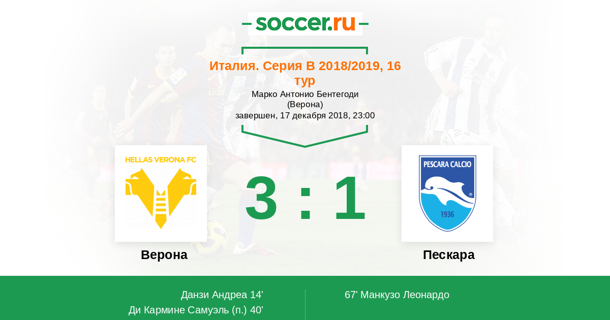 Протокол матча Верона против Пескара