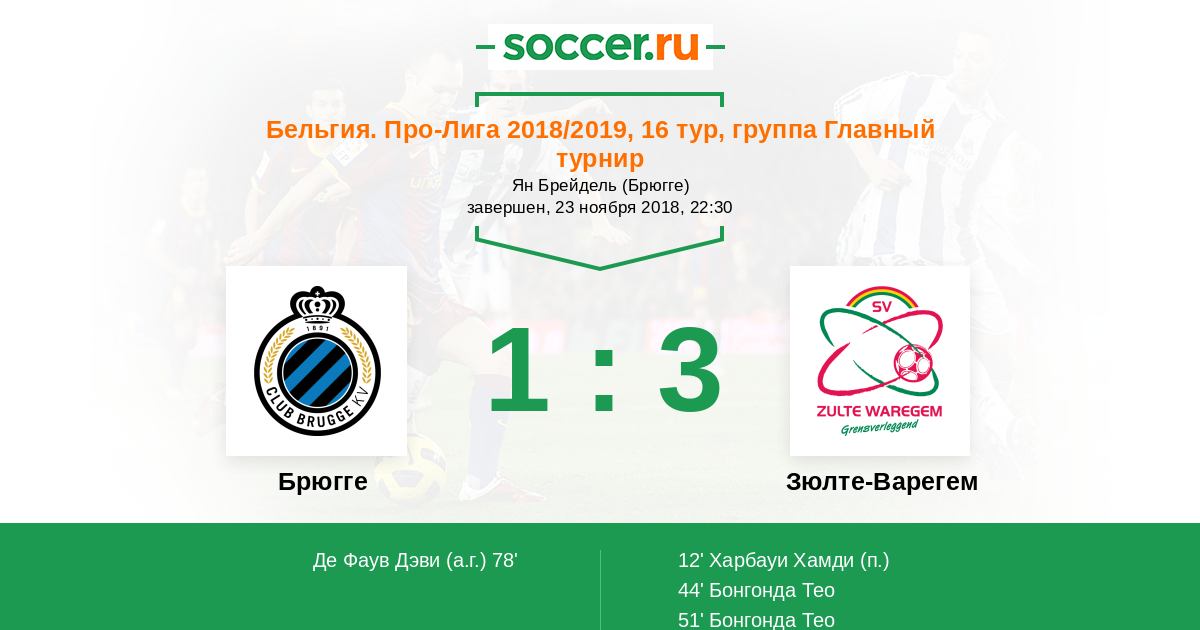 Протокол матча Брюгге против Зюлте-Варегем