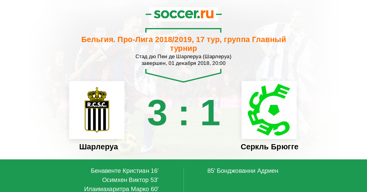 Протокол матча Шарлеруа против Серкль Брюгге
