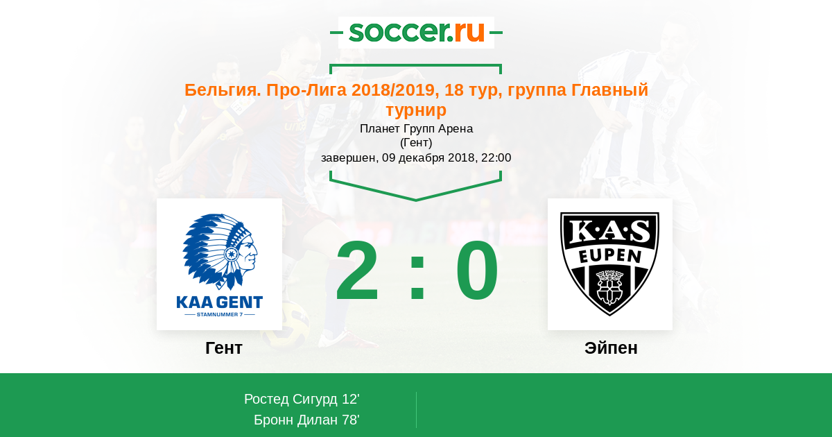 Протокол матча Гент против Эйпен