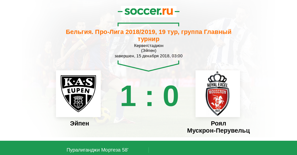 Протокол матча Эйпен против Роял Мускрон-Перувельц