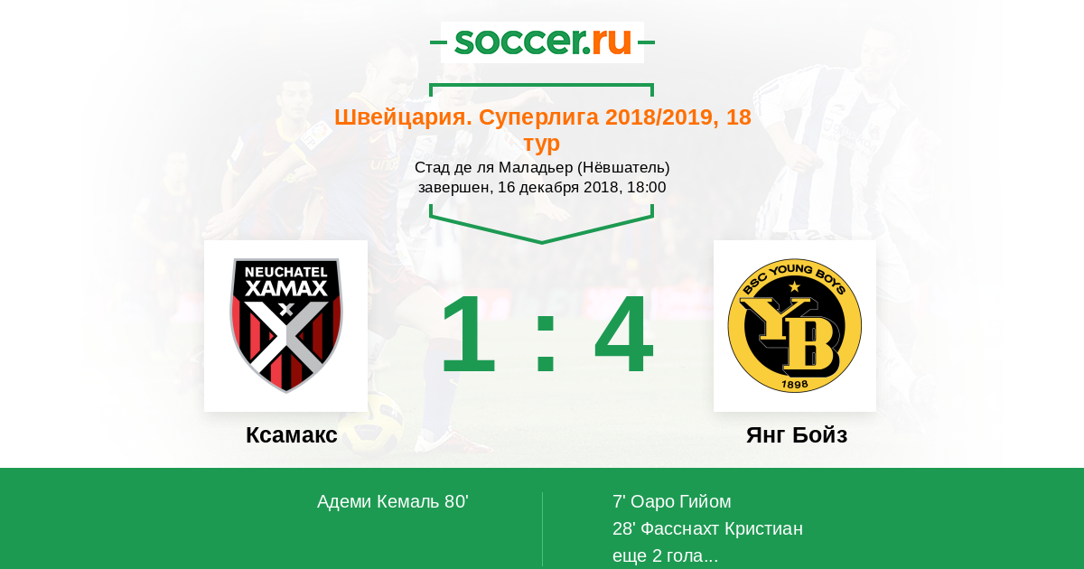28' (0:2) Фасснахт Кристиан (16) (Оаро Гийом (99))