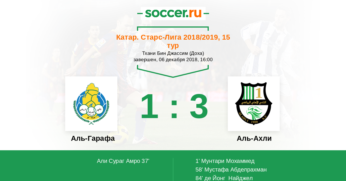 Протокол матча Аль-Гарафа против Аль-Ахли