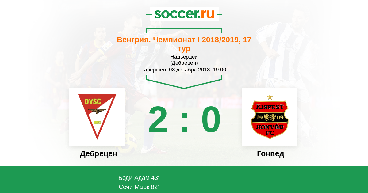 Протокол матча Дебрецен против Гонвед