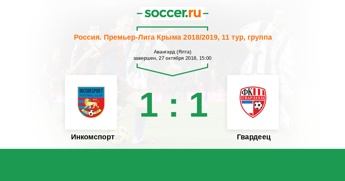 Россия. Премьер-Лига Крыма 08.09.2018 Гвардеец Логотип футбольный клуб Гвардеец (Аграрное) 1:0 Логотип футбольный клуб Инкомспорт (Ялта) Инкомспорт