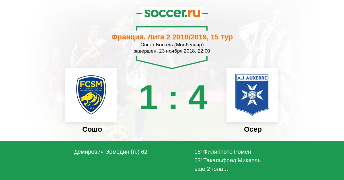 53' (0:2) Такальфред Микаэль (20) (Фере Жюльен (25))
