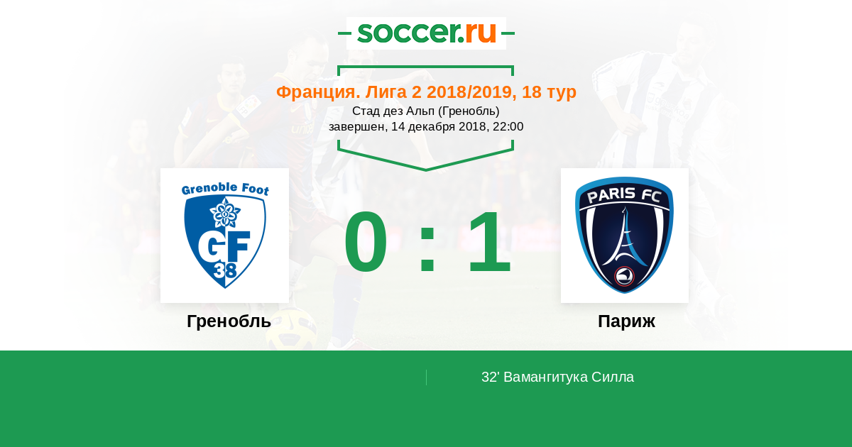 Протокол матча Гренобль против Париж