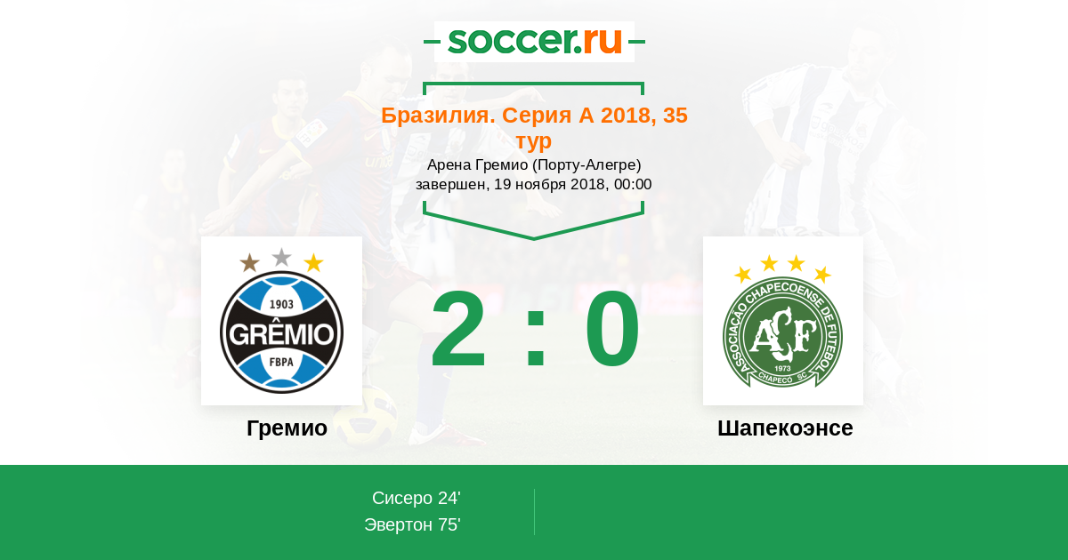 24' (1:0) Сисеро (77) (Алиссон (23))