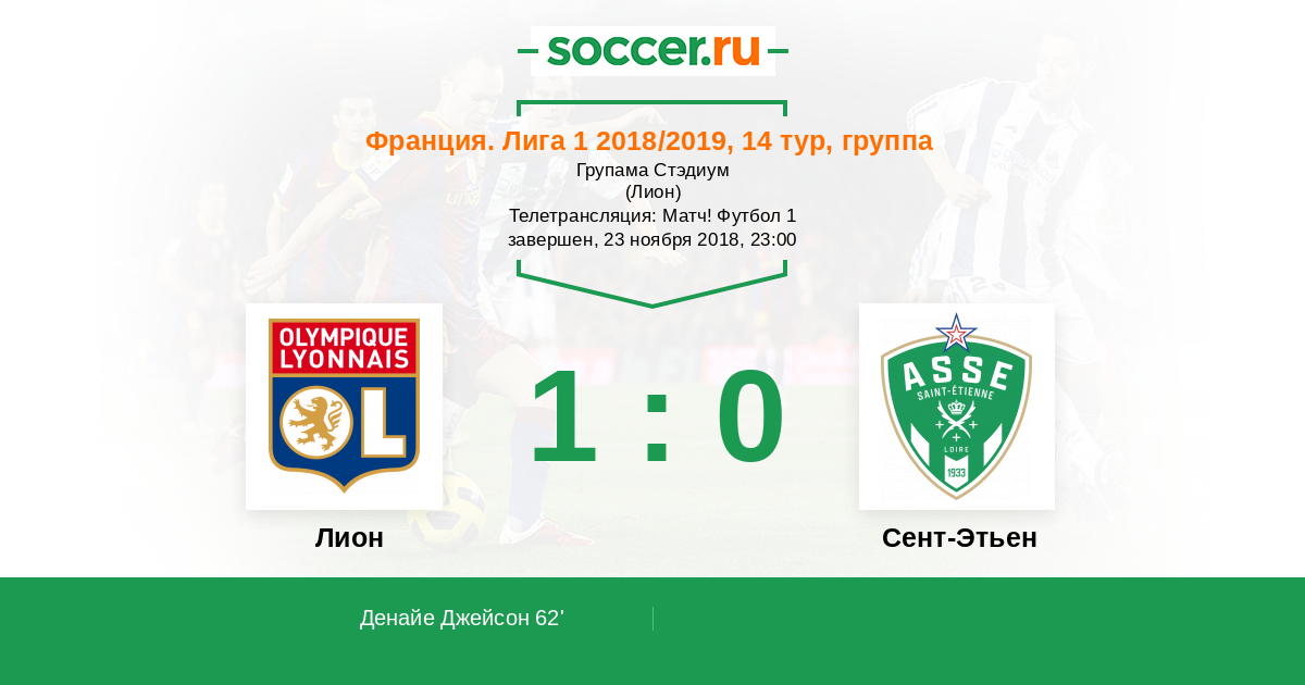 Протокол матча Лион против Сент-Этьен