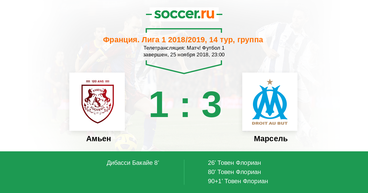 Протокол матча Амьен против Марсель