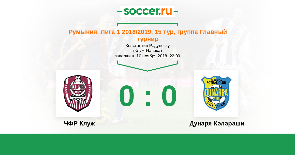Протокол матча ЧФР Клуж против Дунэря Кэлэраши