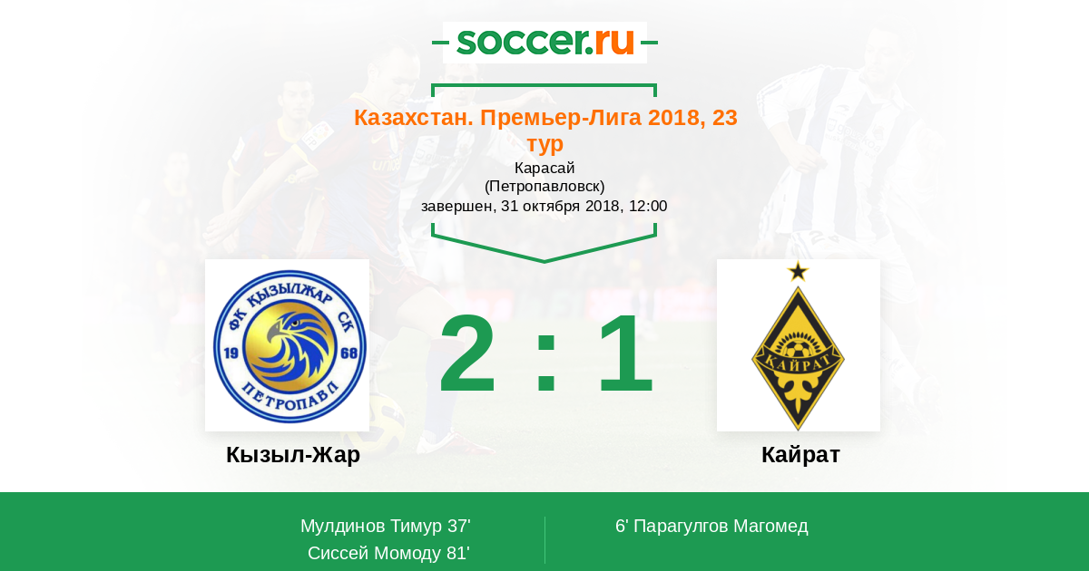 Протокол матча Кызыл-Жар против Кайрат
