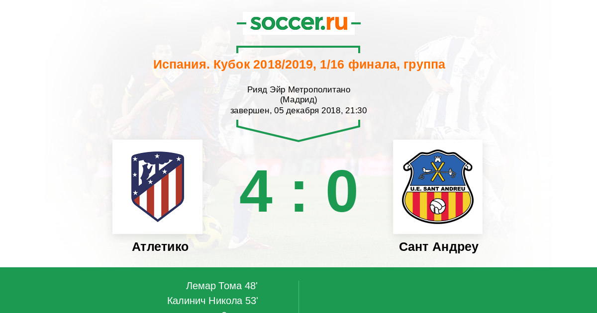 Протокол матча Атлетико против Сант Андреу