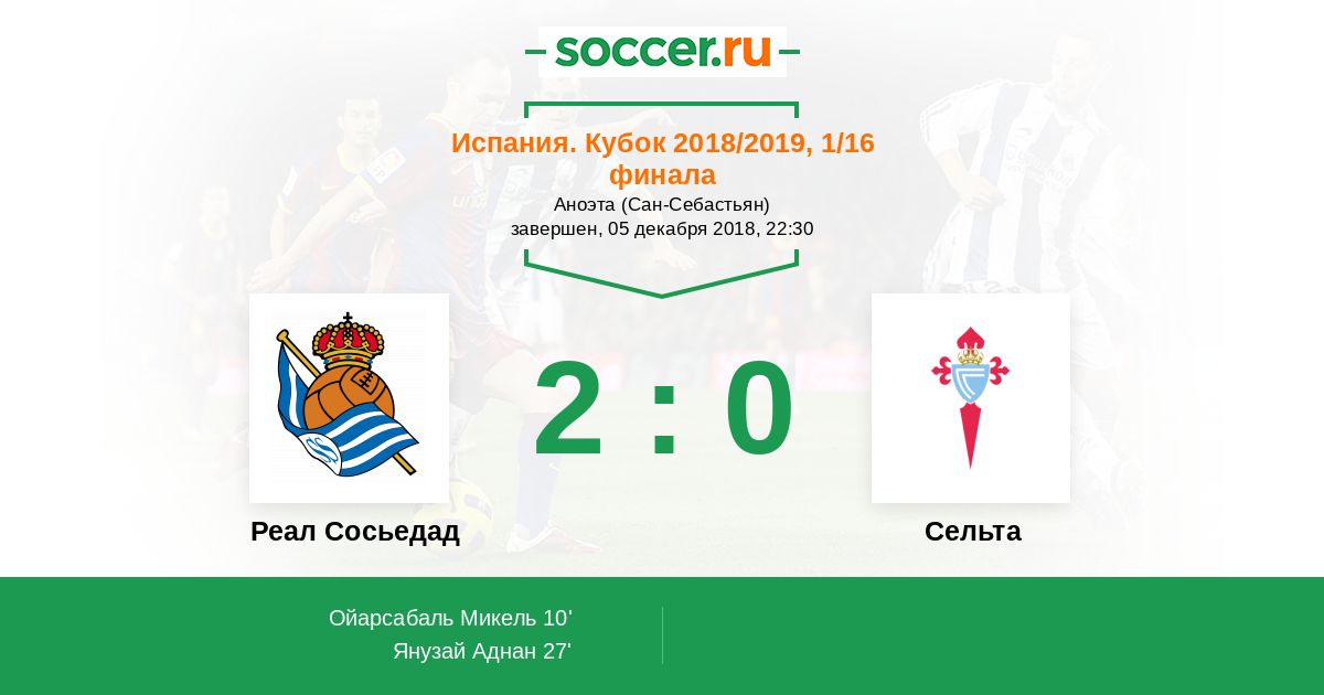 Протокол матча Реал Сосьедад против Сельта