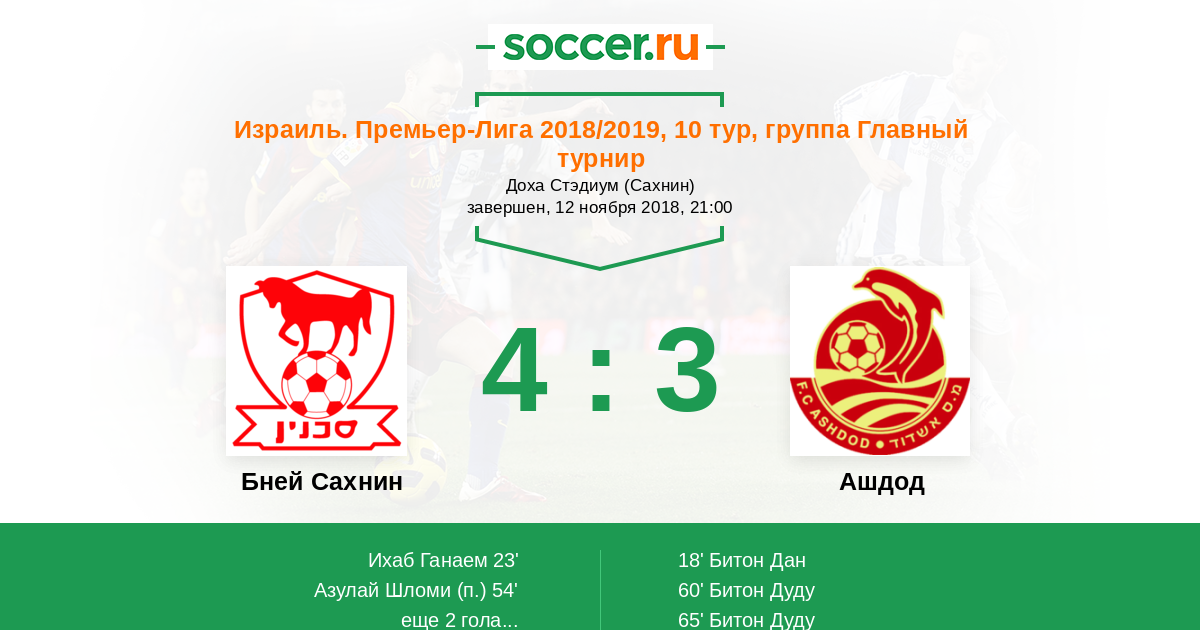Протокол матча Бней Сахнин против Ашдод
