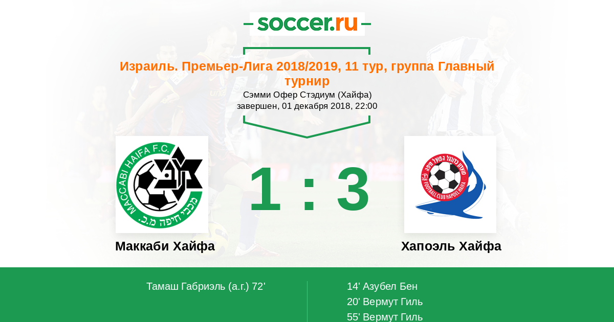 Протокол матча Маккаби Хайфа против Хапоэль Хайфа